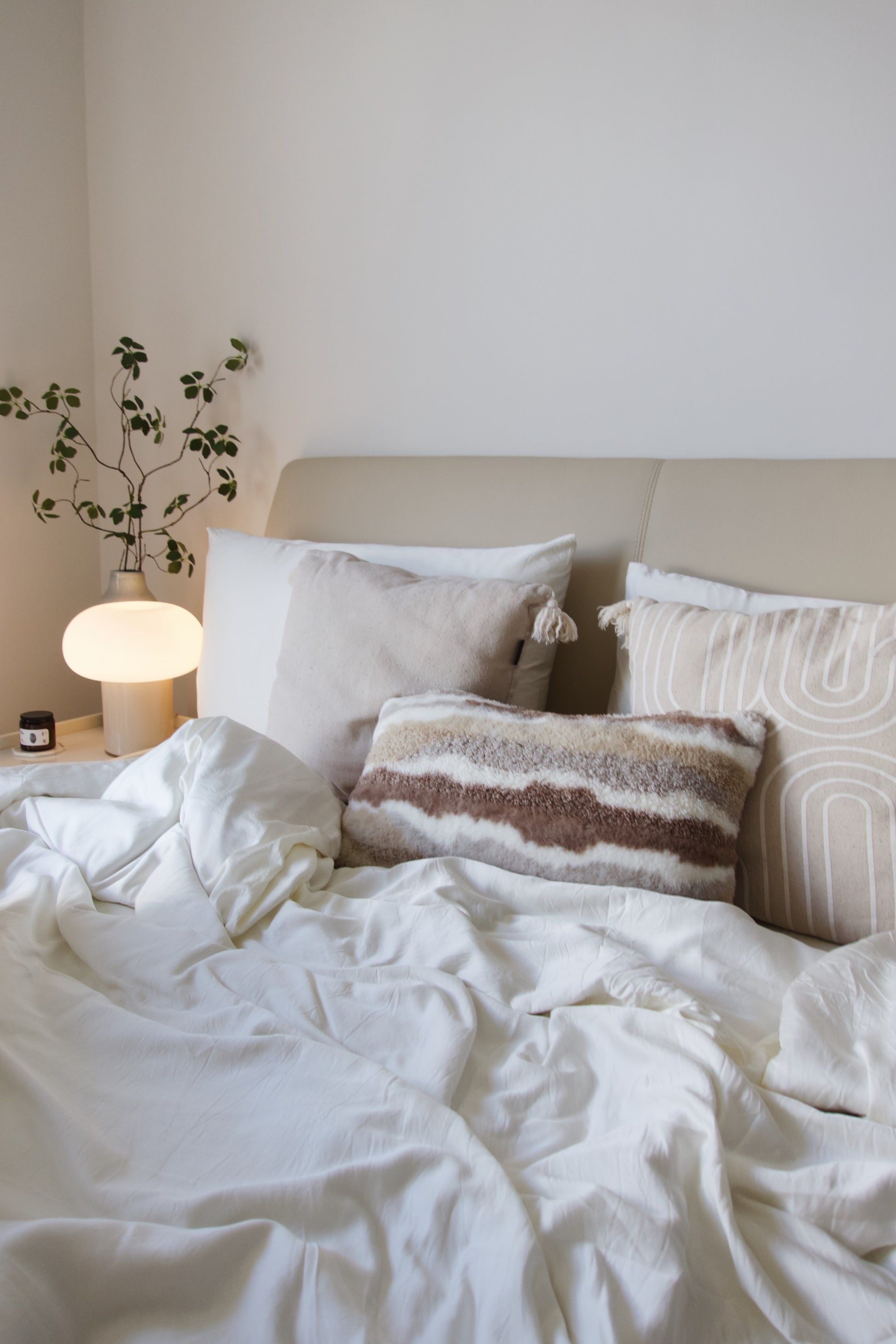 - Thoughtfully selected neutral tones & natural bamboo fibre to help you relax.